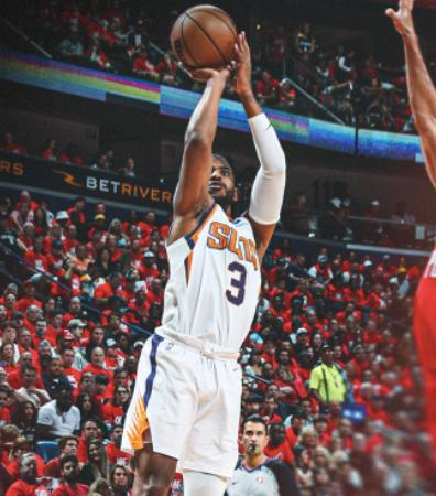 第四节开始前,保罗在板凳席向队友喊话,展现了领袖价值。关键的第四节保罗再度站出来。从9分22秒开始,保罗命中6记中投,手热得发烫,太阳也笑到最后。