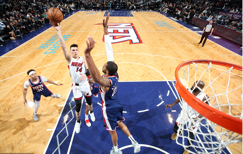 次节开战希罗连得4分,德拉季奇连续上篮打进回应,小库里三分也有,紧接着热火打出一波7-2,庄神和米尔斯连得10分回应热火,阿德巴约带领热火又打出一波11-2,幸好杜兰特连续单打得分保证了篮网的领先,节末马丁命中三分回血,上半场结束篮网67-60热火。