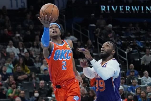比赛一开始,客场作战的太阳队率先进入状态,并实现了喧宾夺主。德文-布克打满首节12分钟的比赛时间,投篮3中2,罚球4中4,送出了8分1篮板3助攻2抢断的数据,布里奇斯也有8分2篮板1助攻1抢断的数据贡献。伴随着两人接连发力,太阳队顺势打出了31-14的比分,拿到17分的领先。然而令人略感意外的是,在进入次节对决之后,开局就保持高涨状态的太阳队竟陷入了得分荒,让雷霆队抓住了反击的机会。